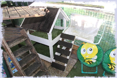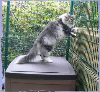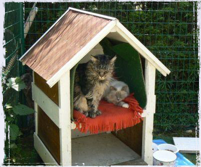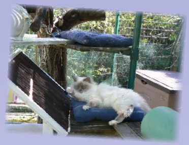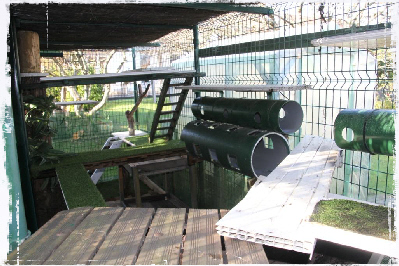 Comme ces jolis chats de race ne peuvent pas être en liberté totale, nous leur avons créé un espace clôturé en plein air.