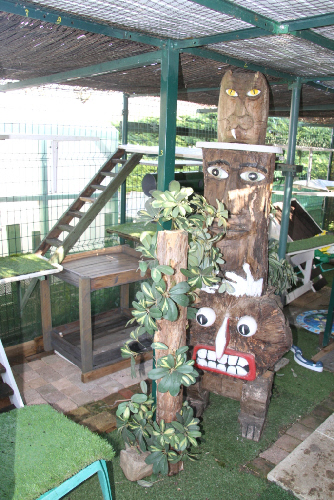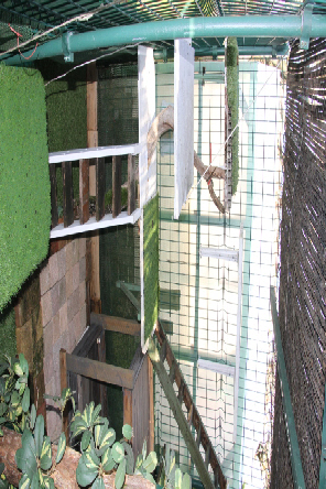 Si l'enclos se trouve dans un endroit fortement ensoleillé il faut ajouter sur le toit des paillotes pour protéger nos résidents