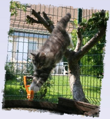 Comme nos minets sont de très bons grimpeurs, il est préférable de couvrir le dessus par un maillage léger.