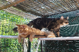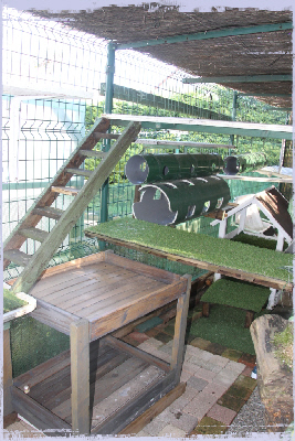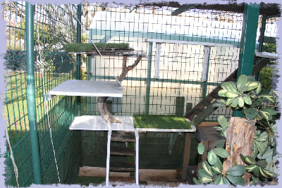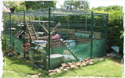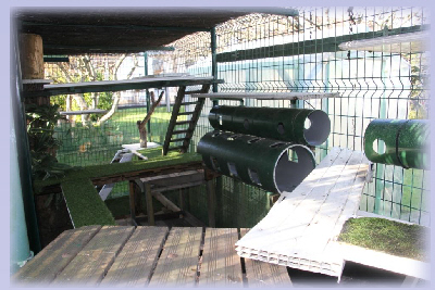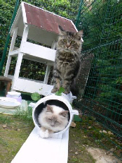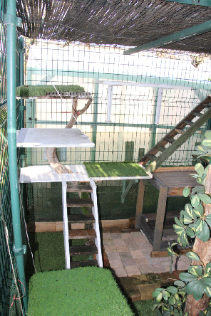 Comme ces jolis chats de race ne peuvent pas être en liberté totale, nous leur avons créé un espace clôturé en plein air.