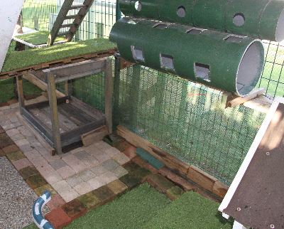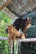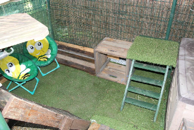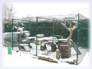 Si l'enclos se trouve dans un endroit fortement ensoleillé il faut ajouter sur le toit des paillotes pour protéger nos résidents